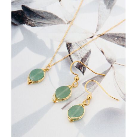 【特別な12誕生石】5月アベンチュリンネックレス&ピアスセット(ゴールドフィルド)