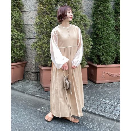前後2WAYで着用可能なプリーツジャンパーワンピースが登場!プリーツは大小2種類の幅のプリーツを組み合わせてプリーツの広がりが綺麗になびくよう、抜け感にもこだわっています。また低身長さんでもスタイルもよく着こなせるようにウエストにはパイピング切り替えも施しているのもポイントです。
