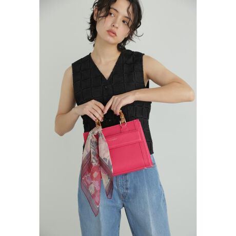 デイリーに使いやすいバンブーハンドル付バッグ表面にシボ感のある合皮を使用、底びょうも上品なアクセントになります。かっちりとしたルックスなので、日常のお出かけシーンにぴったりです。ショルダー付きで肩掛けができる仕様。