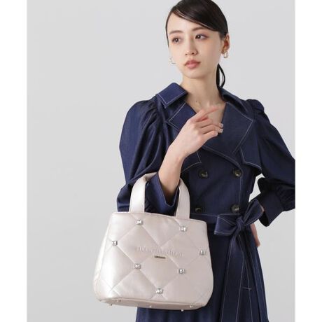 かっちりとしたフォルム感のあるシャインキルトトートバッグ。きらっと光るストーンとダイヤモチーフカッティングのキルトのレディ感あふれる組み合わせ。小さいサイズながらも、デイリーに必要なものをしっかり収納できます。ONOFFで合わせやすいカラーとディテールに仕上げました。※撮影時照明の関係により、色味が違って見える場合がございます。またパソコン・スマートフォンなどの環境により、若干製品と画像のカラーが異なる場合もございます。予めご了承ください。商品の色味は、商品単品画像をご参照下さい。※商品画像はサンプルのため、色味やサイズ等の仕様に変更がある場合がございますので、予めご了承ください。