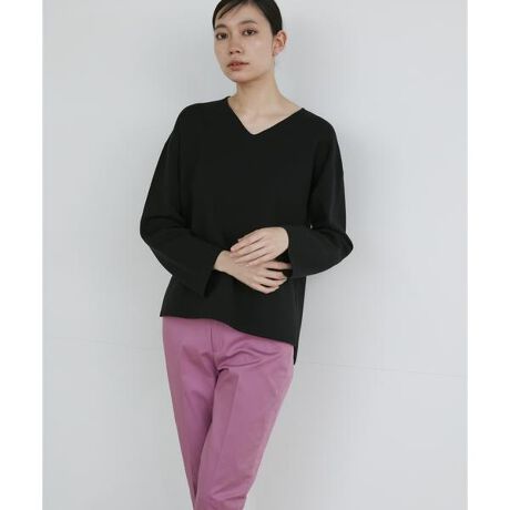 ボリューミーなシルエットと、太めの袖のラインがポイントのVネックニットです。ダブルフェイスの編み組織はハリ感があり、立体的なシルエットを楽しめます。シンプルなデザインながらも、深めに入ったスリットで抜け感を表現しました。・水洗い可■サンプル撮影商品■こちらの商品はサンプルでの撮影となっております。実際の商品とは、サイズや色味、素材、デザイン等の仕様が若干変更になる場合がございます。