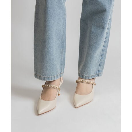<23春夏新作>【22.5-25.5】チェーンパーツバックストラップパンプス