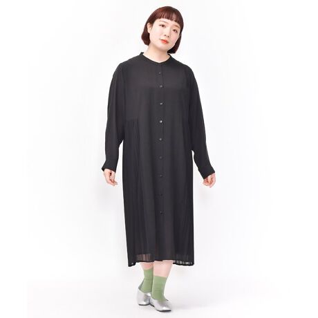 ◆ 脇からチラリと見えるプリーツがとってもおしゃれ!(大きいサイズ) ◆サイドに切り替えでたっぷりプリーツを入れた使いやすい前開きのシャツワンピースです。縦に入った切り替えは「I」のラインを強調させ 美しいシルエットを描きます。ウエストは自由にフィックスできるリボンがついており シルエットを変えて着こなして頂けます。同じシリーズのシャツとは異なったプリーツをそれぞれのイメージでお楽しみください。Olaca model:H164 B94 W82 H103 *3サイズ着用《お取り扱いについて》・着用またはお取り扱いの際は、アテンションタグや洗濯ネームを必ずご確認ください。《注意事項》※商品の色や質感をできるだけ忠実に再現するよう心がけていますが、撮影場所やお使いのモニター環境により、実物と若干異なる場合がございます。予めご了承ください。※写真を許可無くコピー・転用することは固くお断りします。