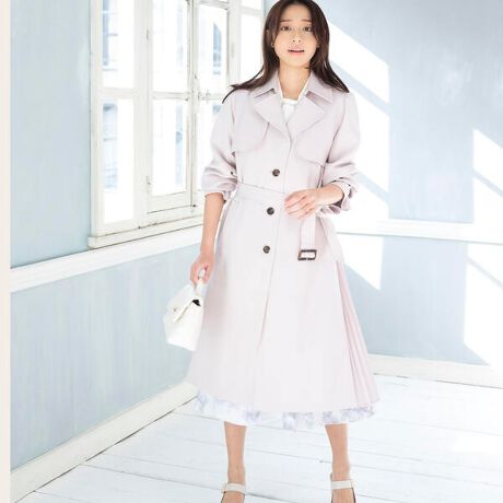 これからの季節にぴったりな、軽やかに羽織れるロング丈のトレンチコートです。両サイドはシフォンプリーツ切り替えでレディなアクセントをプラスしました。ボタンを開けてもきれいなこだわりのAラインシルエットです。