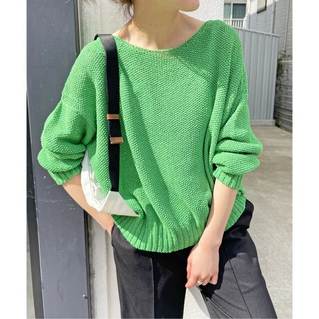 素材感:シャリ感がありサラッと軽い素材感。ニットですが少しだけ透け感もあるので暑い季節にもおすすめです。