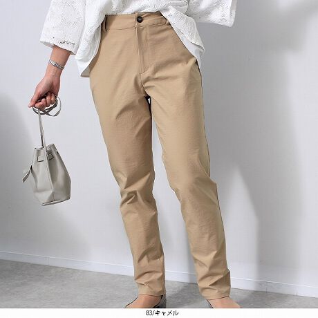程よい張り感があり、体のラインを拾いにくい素材を使用したスリムパンツです。