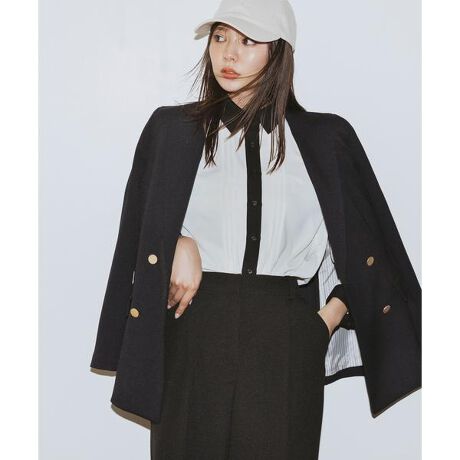 マニッシュな雰囲気のダブルブレストジャケット。襟元をシャープに見せるテーラーカラーで、インナーがすっきりと映えるデザイン。シンプルなシルエットで羽織りやすく、バックベンツをいれ動きやすく仕上げています。通勤スタイルから休日のカジュアルダウンにも取り入れやすいアイテムとなります。