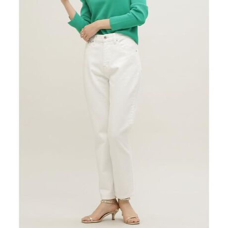 シーズンレスで着用できるデニムパンツ。細すぎない程良い太さのテーパードシルエットで使い勝手の良いデザイン。やや高めのウエスト位置がスタイルアップ効果を発揮。足元をすっきりと見せてくれる短めのレングスで、ソックスやシューズ合わせも楽しくなりそう。