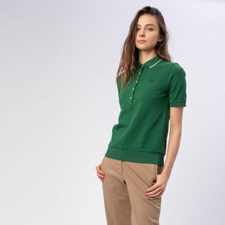 衿にアクセントラインの入ったストレッチミニピケの半袖ポロシャツ。袖口や裾のリブ周りにはさり気なく分量を入れているので女性らしい上品な雰囲気です。パンツとの合わせはもちろん、トレンドのボリューム感のあるスカートとも相性抜群です。