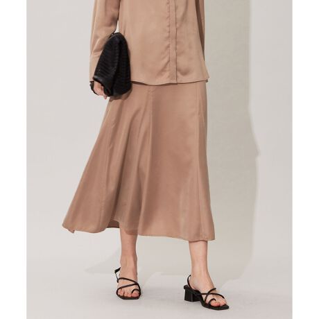 ソフトマーメイドシルエットとサテン素材で女性らしさ引き立つスカート