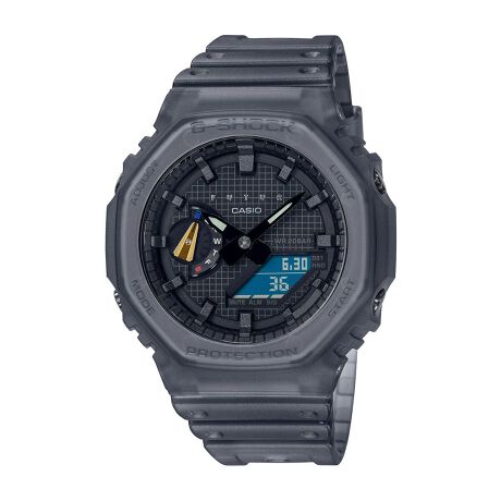 八角形のベゼルとシンプルなデザインで人気の「GA-2100」をベースモデルに採用。グレーを基調としたスケルトンカラーで全体をワントーンで仕上げました。