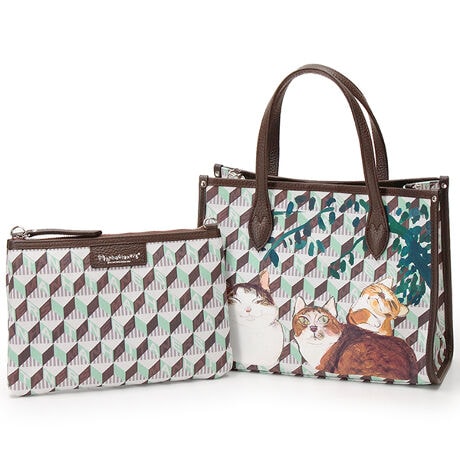 マンハッタナーズオリジナルモノグラムの上に猫好きが大好きな眠っている猫たちをちりばめたバッグシリーズ。