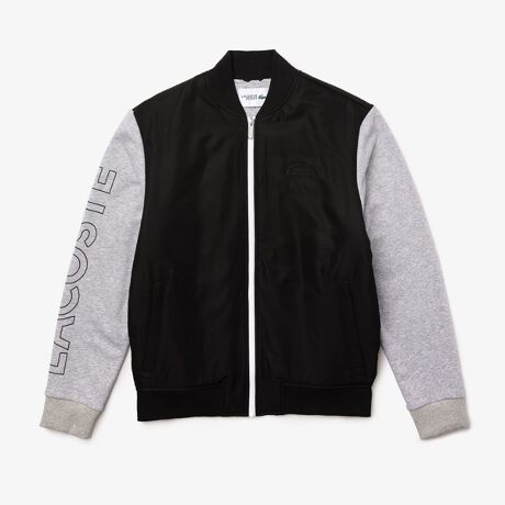 ハリ感のある素材の身頃と、袖をスウェット素材で切り替えたスタジアムジャンバーモチーフのジップブルゾンです。オーセンティックなディテールで上品に仕立てつつ、コントラストカラーのフロントジップと右胸の5cmのシリコンエンブレムが特徴的なデザインに。右袖にはブランドネームロゴでスポーティーに。胸元とジッパースライダーのクロックエンブレムもさり気なく主張する、トレンド感のある1枚です。Classic Fit