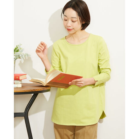 [型番:467J2405]綿ポリエステルのプレーティング天竺を使ったTシャツです。無地3色展開で重ね着などの着合わせに便利です。
