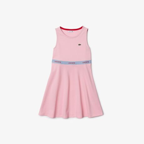 ブランドを象徴する素材である鹿の子地を使用したタンクトップドレス。左胸にはトレードマークのクロックグラフィックをプリント。ウェストラインにはブランドネームロゴをジャカードした配色ラインを施し、ガーリーなスタイルの中にもスポーティーな演出を施したラコステらしい1枚です。