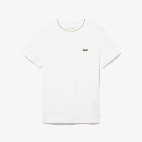 すっきりシンプルなクルーネックTシャツは、首リブにあしらったゴールドラメのナローステッチでリュクスに演出されています。トレードマークのクロックエンブレムもゴールドのアウトラインステッチで彩った、シンプルかつエレガントな1枚です。