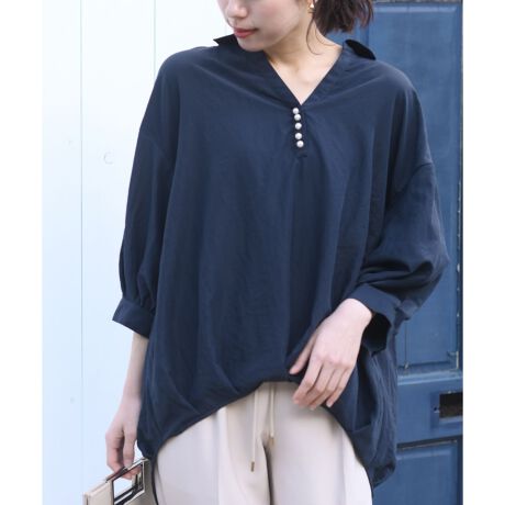 スキッパー襟がデコルテとネックラインを美しく見せてくれます。