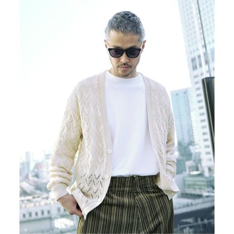 ジグザグ柄のメッシュ調の透かし柄がデザインポイント。メンズライクで落ち着いた柄なので、合わせやすく無地でも遊びの利いたスタイリングに昇華してくれます。