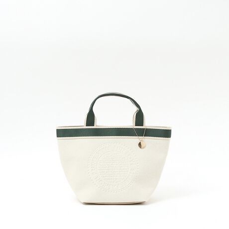 サークル型に施したエンボス加工と、持ち手や開口部の配色がさりげないポイントに。