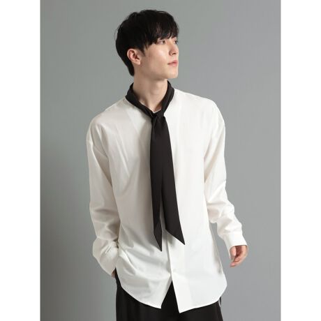 主役級の存在感を発揮してくれる、レギュラーカラーの長袖シャツです。ボウタイと袖口のカフスでモードな雰囲気に仕上げています。ボウタイは結んでも、結ばずに垂らしても着用していただけます。ジャケットやジレのインナーに便利なアイテムです。