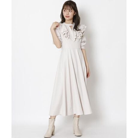 ボリュームカラーが華やかな印象のレディワンピース【Design】・顔周りを華やかに魅せるフリルカラーとパイピングのアクセントが効いたワンピース。・たっぷりと生地を使ったボリュームのあるカラーは二重にし、華やかさを演出するだけでなく小顔効果も抜群!・ウエストから裾にかけて広がるサーキュラーシルエットが女性らしさを引き立てます。・ほんのり開いた胸元のデザインでヘルシーな印象もプラス。・バックウエスト部分はシャーリング+レースアップ仕様となっており、お好みのシルエットに調節が可能。・レディ感溢れる春のお出かけにピッタリなワンピースです。・バックファスナー仕様、ボタン留め。【Fabic】・きれいな落ち感のある滑らかなポリエステル生地を使用。・スムースな裏地付き。・ご自宅でお手入れが出来るのも嬉しいポイント♪・印象の異なるベージュ、ミント、ブラック系チェックの3色展開となります。【Care】洗濯機洗い可能