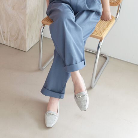 シンプルなデザインの中にきらりと輝くパールやビジューをプラスした上品なデザインのローファー。