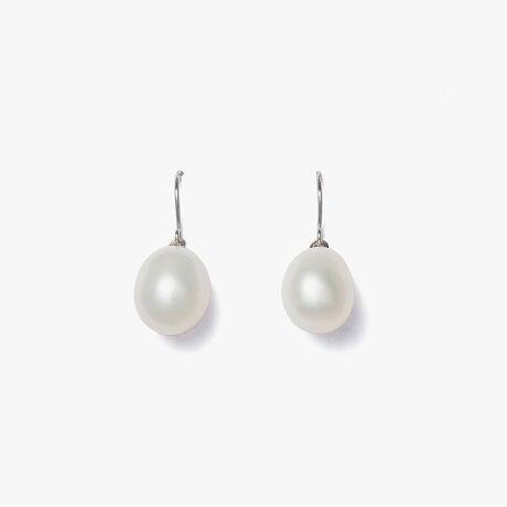 やわらかな艶をたたえた淡水パールが揺れる、ホワイトゴールドのフックピアス。