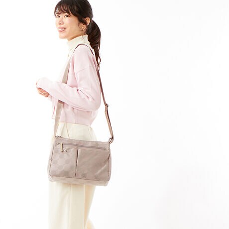 エレガントな素材感に対して、充実したポケット等の機能性で小旅行からデイリーまで幅広く使えます。