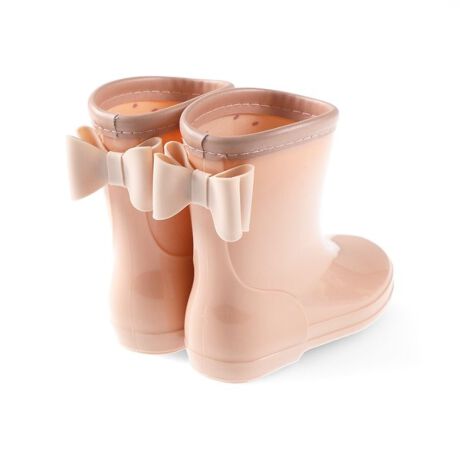 うしろに異素材のリボンが付いたとっても女の子らしいレインブーツです。
