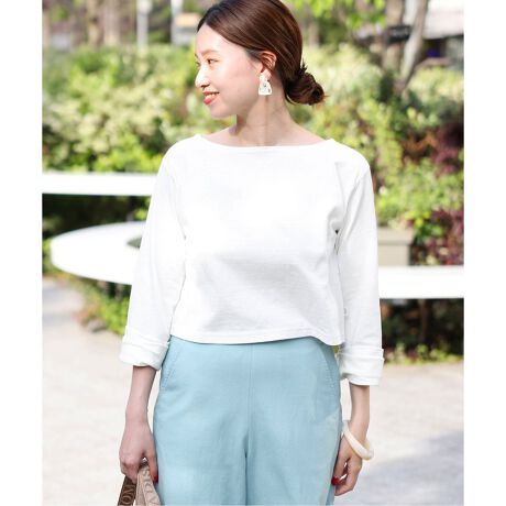 【TRADITIONAL WEATHERWEAR】別注 クロップド ボートネックTシャツ