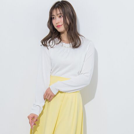 パールがネックレスをしているみたいで、エレガントに着れます。