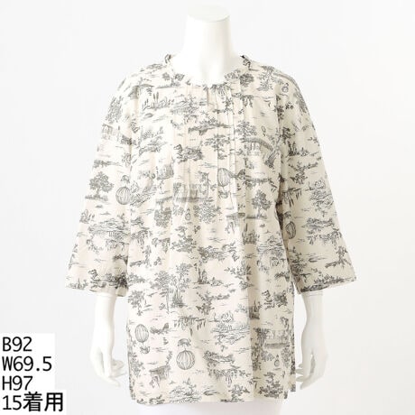 トワルドジョイ調プリントブラウス【グリーンノート】【大きいサイズ】【13号・15号・19号】