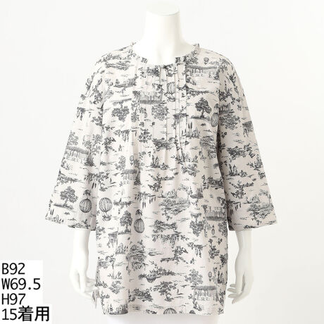 トワルドジョイ調プリントブラウス【グリーンノート】【大きいサイズ】【13号・15号・19号】