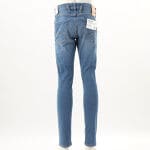 【ANBASS/アンバス】レギュラーウエスト、テーパードシルエットながらも、腰やもも周りにややゆとりを持たせた、きれいめなシルエット、ジップフライ。Hyperflex Originalとネーミングされた’80年代のテイストを最新のハイパーテクノロジーで表現しました。酵素とストーンウォッシュでミディアムトーンに仕上げ、レッグのUSEDエリアにコントラスト、サンドペーパーでウィスカーとスクレーピングを施しマネキンによる3D乾燥で立体的に仕上げました。【HYPERFLEX】2倍以上の伸縮を持つハイパーフレックスの主な特徴は、高い弾力性、優れた生地回復力、優れた快適性です。 これは、Hyperflexが優れた形状保持、完全な動きやすさを提供することを意味します-かなりの摩耗の後でもたるみや変形がなく、豪華な感触があります。【RE-USED X-LITE】このデニムはリサイクル素材で作られています。紡糸過程で失われた綿繊維、裁ち切れ布は紡績のために再利用されます。ポリエステルはペットボトルのリサイクルを使用、そしてライトフィットで肌感覚に近づけた環境に配慮したサステナブルな製品です。