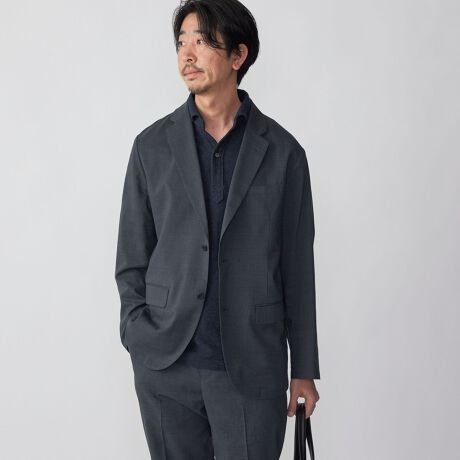 着心地の良い、すっきりとしたシルエットの2つボタンジャケットに構築し、ビジネスでのジャケパンスタイルから、カジュアルなコーディネートまで幅広く対応可能なアイテムです。