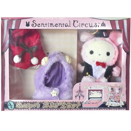 センチメンタルサーカス第26弾は、童話の「ヘンゼルとグレーテル」をテーマにお菓子の家や物語にまつわるキャンディなどのスイーツが彩ります。童話にちなんで、大人気のシャッポとスピカが双子役で登場! ふたりが演じるメルヘンな世界をどうぞお楽しみください☆ついに!シャッポでいろんなお洋服が楽しめるおきがえセットが発売に♪ぬいぐるみキーホルダー(シャッポ)、シルクハットと団長チョッキ、赤ずきんケープ、夢羊のポンチョの4点セットです☆箱の後ろを開けるとぬい撮りジオラマステージ付き!ぬいぐるみと小物とステージを合せると、かわいいぬい撮りができちゃう(^O^)