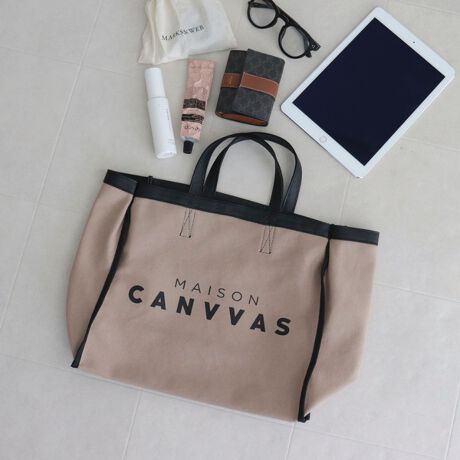 ・どのスタイリングにも合うメゾンキャンバスのトートバッグ。