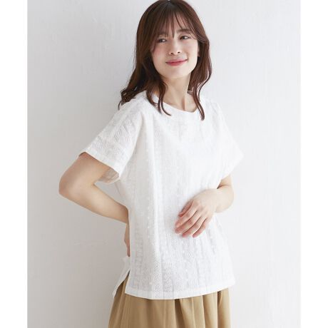 フロント総刺繍の半袖ブラウスです。