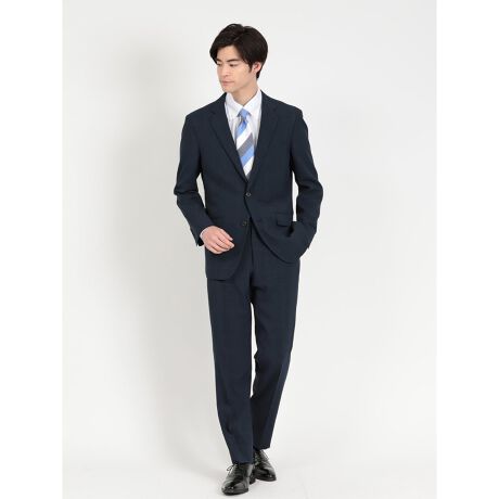 ストレッチウォッシャブル レギュラーフィット 2ボタン2ピーススーツ チェック紺