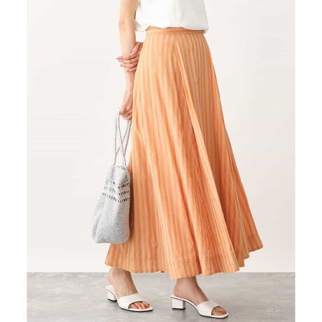 ストライプ柄が印象的なスカート。タックの入った立体的なロング丈のAラインシルエットです。程よいボリューム感が特徴。