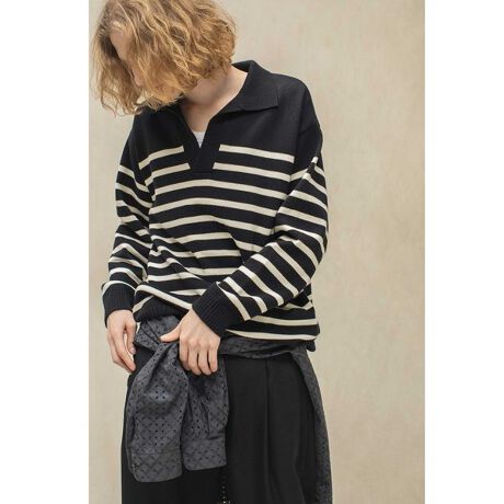適度なオーバーサイズ感と少し幅の広いボーダーが特徴です。