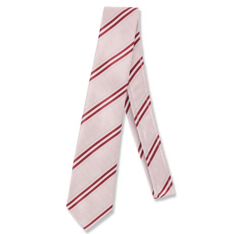 ビジネスシーンで合わせやすい、スタイリッシュな印象の大柄ストライプです。幅広いスーツスタイルに合うので、1本は押さえておきたいアイテムです。オンスタイルはもちろん、プライベートのタイドアップにも大活躍してくれます。