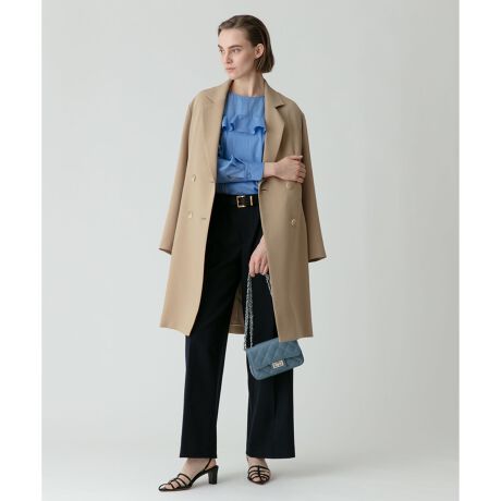 ドライタッチのダブルクロス素材を使用した上質感のあるチェスターコート。少しゆとりのあるモダンなシルエットとクリーンな素材感でジャケット感覚で着られる春のマストバイアイテム。ベーシックなネイビー、ベージュのほか、春らしいピンクをラインナップ。さらりと羽織るのはもちろん、レザーベルトなどでウエストをマークするのもおすすめ。