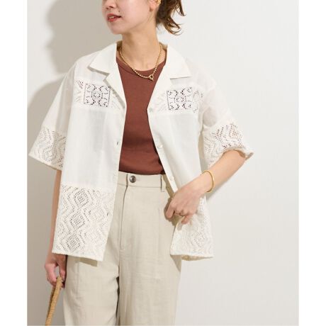 2種類の柄の違うレースを切り替えて使用した華やかなシャツ。