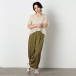 ブラウンとイエローグリーンのカラー展開が新鮮な夏ボトムです。