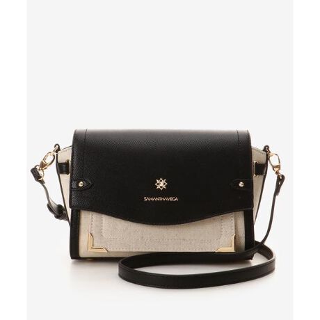 ◇SAMANTHAVEGA(サマンサベガ)のバイカラーキャンバスビジューショルダーバッグシンプルなデザインにバイカラーと柔らかな曲線がポイントのシリーズに新色が登場。バイカラー部分がキャンバス素材で爽やかな印象です。シンプルなデザインですが、キラッと輝くビジューが華やかな印象に。あおりポケットがついているのでスマートフォンやパスケースなどサッと取り出したいアイテムを入れていただけます。