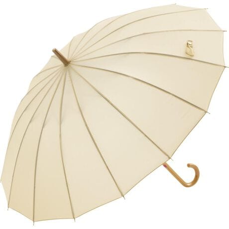 雨の日でもオシャレにお出かけ♪ロング傘(親骨55cm)が発売♪【デザイン性と耐久性が備わった16本骨】・和傘のように見える16本骨構造は一般的な8本骨の傘と比べ、丈夫で雨に濡れにくい。【ジャンプタイプ】・荷物が多い時にも片手でサッと開くジャンプタイプの傘。【開閉しやすい安全ガード付き】・開閉時に爪や指を挟むのを防止する安全ガード付きで、ネイルアートを施した指でも安全に開閉できる。【スナップボタン傘バンド】・傘が濡れた状態でもパチッとしっかり留まるスナップボタン仕様の傘バンド。