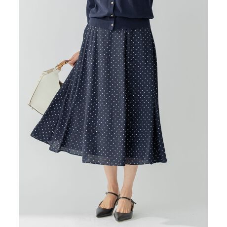 裾に向かってキレイなドレープが広がる美しいAラインのスカート。ウエストは後ろにゴムを入れ、伸縮性を持たせたストレスのない着用感◎。ヴィンテージの図案を用いたプリント柄は上品な雰囲気をプラスしてくれます。同素材のブラウスと合わせてワンピースのようにも着用いただけます。落ち感のある素材感で大人の女性らしい1枚に仕上げています。カラーは柔らかな印象のベージュプリント(#533)、すっきりと上品なネイビープリント(#575)の2色展開です。