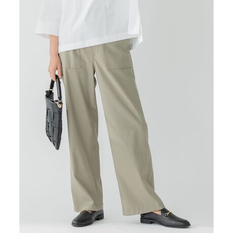 ワイドストレートシルエットのベイカーパンツ。腰回りはすっきりと、ヒップからすそにかけては程よく分量感のあるシルエットで着回し力抜群なアイテム。ステッチの入ったポケットがアクセントになっており、トップスをインして着た時もメリハリがでます。季節を問わず着まわせる素材を使用しているので様々なトップスとの相性が良く、大人カジュアルなスタイリングが叶います。カラーはきれいめスタイルにも使いやすいネイビー(#075)、ニュートラルな色味のベージュ(#033)、ベイカーパンツでは定番のカーキ(#055)に、WEB限定の春らしいイエロー(#040)、スカイブルー(#072)を加えた5色展開です。