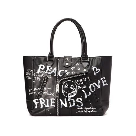 ONEMADE x Schottのコラボレーションアイテムが登場!Schottで人気の高いRIDERS TOTE BAGにONEMADEのデザイナーMIKIO氏が1点ごとにハンドペイントを行ったスペシャルアイテムです。*ハンドペイントのため文字の大きさや柄、ペイント位置は1点ごとに違いますのであらかじめご了承をお願いいたします。大きめのポケットにもなる、ダブルライダースのカラーデザインを加え、サイドのポケットを左右2つにしたことで収納力がアップよりライダースのイメージを強調したデザイン。【ONE MADE】1着づつアトリエでハンドペイントやパッチワークなどの二次加工を行うハンドメイドブランドである「ONE MADE」は、7歳から油彩画を始めたデザイナーのMIKIO氏がグラフィックデザイナー、フィルムディレクターを経て立ち上げたブランド。ブランド名の通り、ONE MADEで唯一無二なコレクションを展開している。【Schott/ショット】 ライダースジャケットの代名詞ともいえるSchottの歴史は、1913年、ニューヨークでアーヴィン・ショットジャックショットの兄弟によって始まった。当初はレインコートを作る工場だったが、1928年に世界で初めてフロントジッパーを採用したライダースジャケット「Perfecto」シリーズを発売。ボタン仕様しかなかった当時、画期的なジャケットとして話題となり、その後のライダース史に大きな影響を与えた。そして、Schottの名を世界に知らしめたのが50年代に発表された星型のスタッズをエポレットに配した伝説のモデル”ワンスター“だ。 この新作こそが、映画『ザ・ワイルド・ワン(邦題「乱暴者」』で、マーロン・ブランドが纏ったと言われているモデルである。その後もラモーンズやセックスピストルズをはじめ、多くのロックミュージシャンに支持され、時代を超えた永遠の番として今なお多くの人々を魅了する。最近では定番モデルだけでなく、カジュアルラインも充実させるなど、常に時代に合わせて進化を遂げる革新性も忘れない。ライダースの歴史は永遠にSchottとともにある。